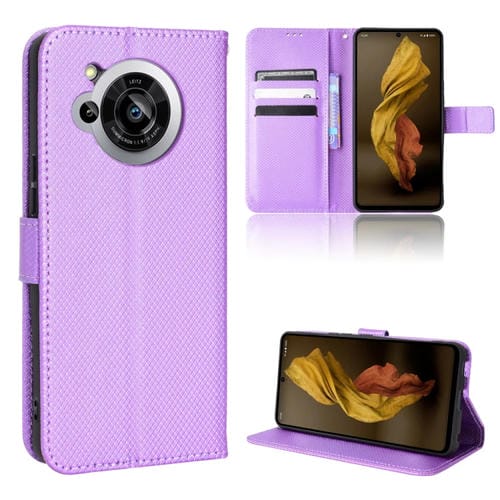 Funda para Aquos R7 de Cuero con Textura de Diamantes (Púrpura)