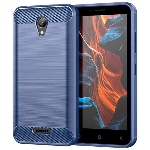 Funda TPU Fibra de Carbono para Lenovo A1010 con Textura Cepillada (Azul)