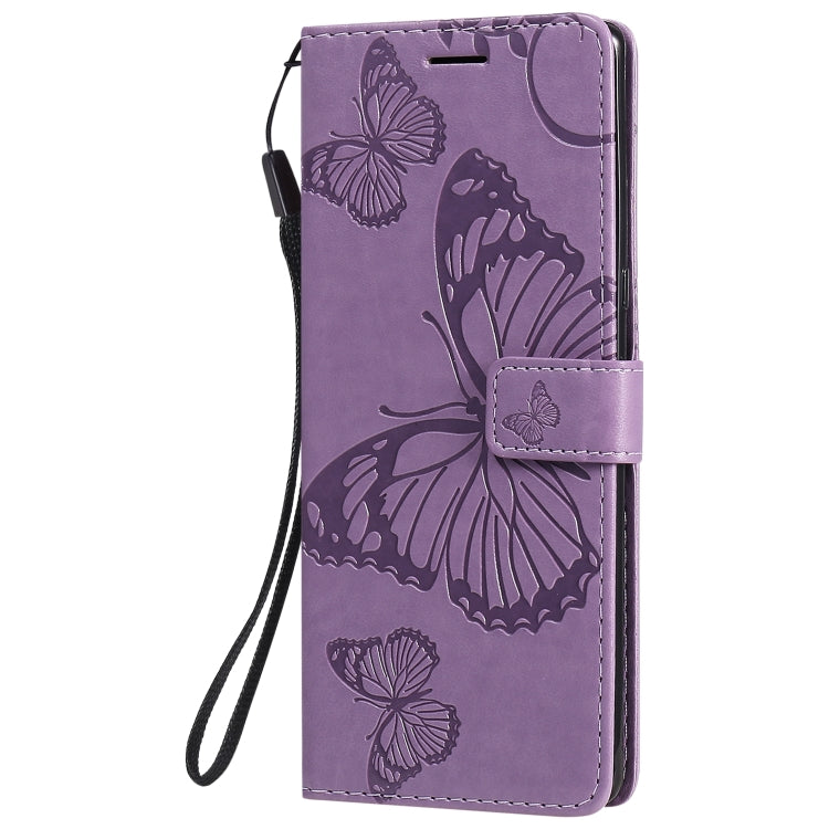 Funda de Cuero para LG G9 con Tapa Horizontal, Patrón Mariposa 3D, Soporte, Ranura para Tarjeta, Billetera y Cordón (Morado)
