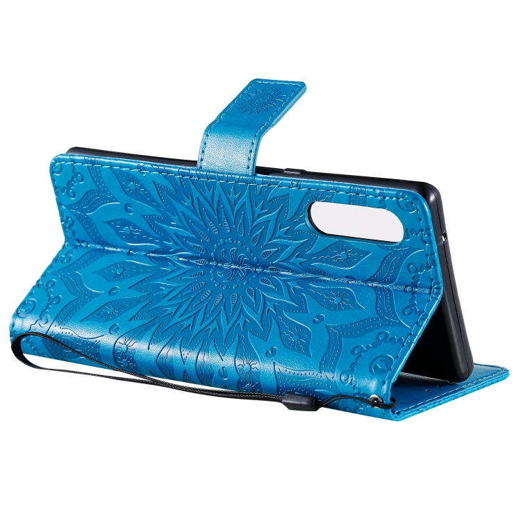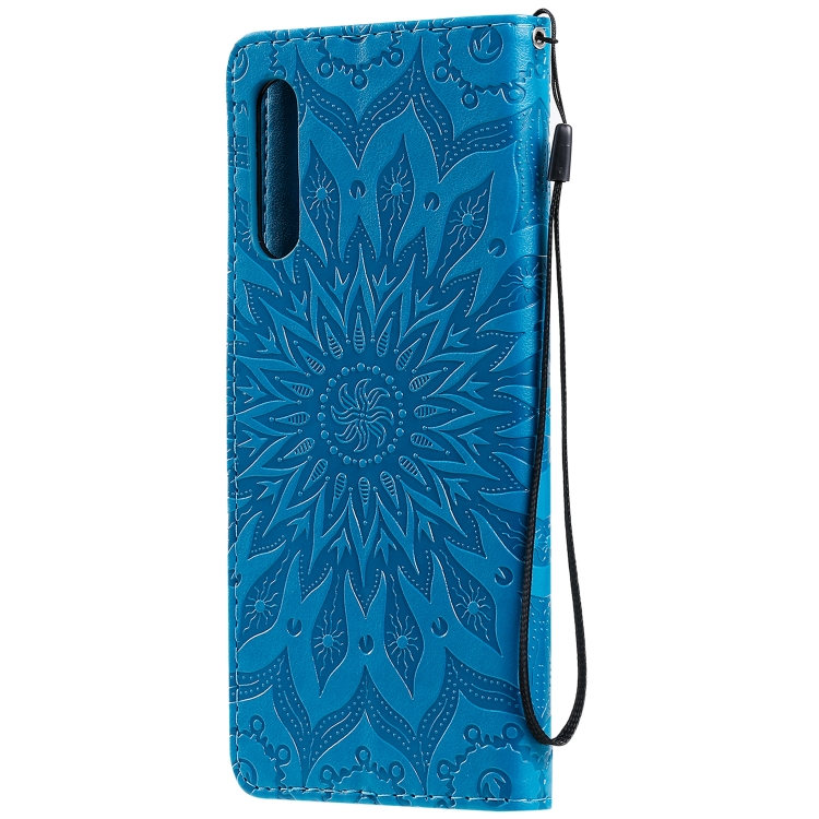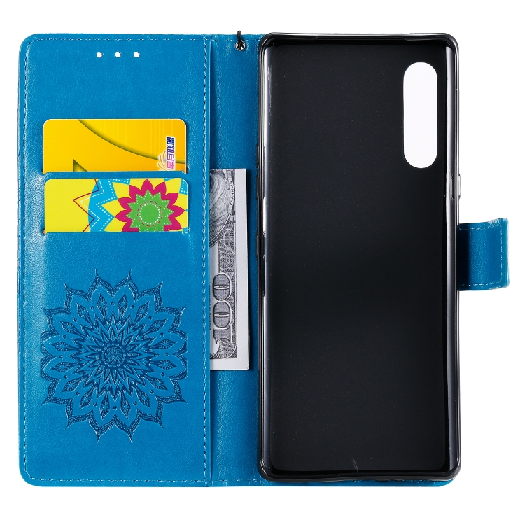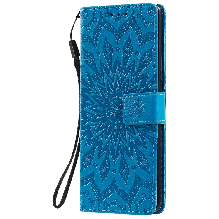 Funda de Cuero PU para LG G9 con Patrón de Girasol, Tapa Horizontal, Soporte, Ranuras para Tarjetas y Billetera (Azul)