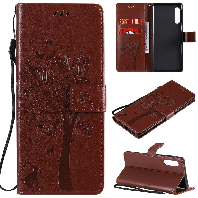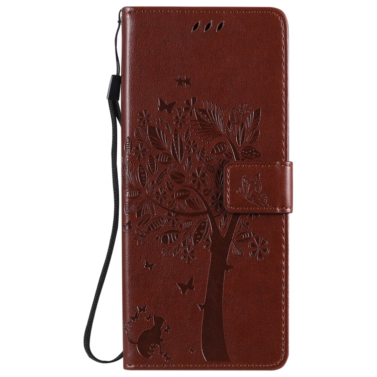 Funda de Cuero para LG G9 Tree & CAT con Tapa Horizontal, Soporte, Ranuras para Tarjetas, Billetera y Cordón (Café)
