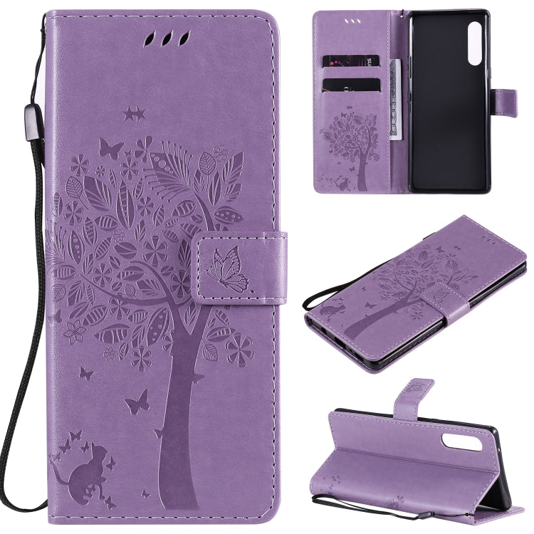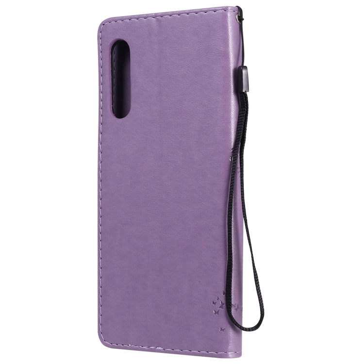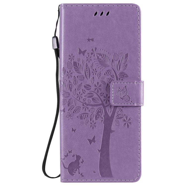 Funda de Cuero para LG G9 Tree & CAT con Tapa Horizontal, Soporte, Ranuras para Tarjetas, Billetera y Cordón (Morado Claro)