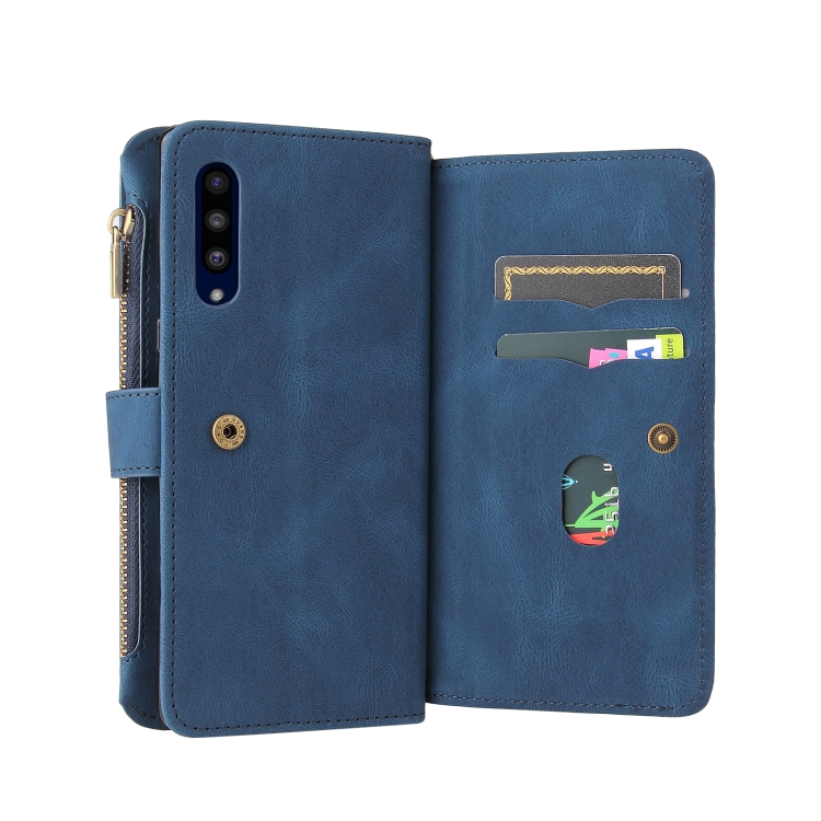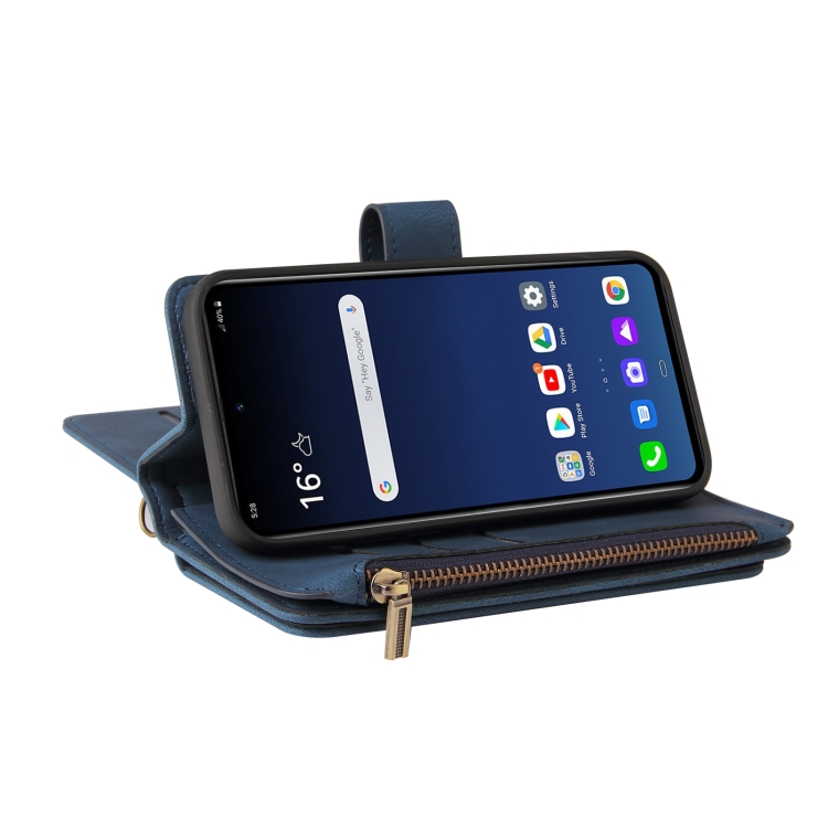 Funda de Cuero Horizontal Flip para LG G9 Velvet Skin Feel con Titular, 15 Tarjetas, Wallet, Cripper Pocket y Lanyard (Azul)