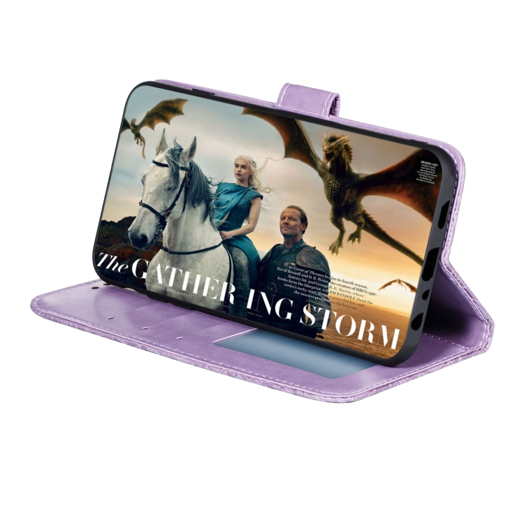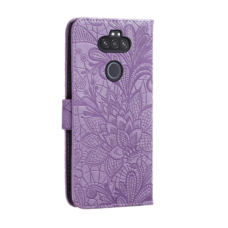 Estuche de Cuero para LG K31 con Tapa Horizontal, Soporte, Ranuras para Tarjetas, Billetera y Cordón (Púrpura)
