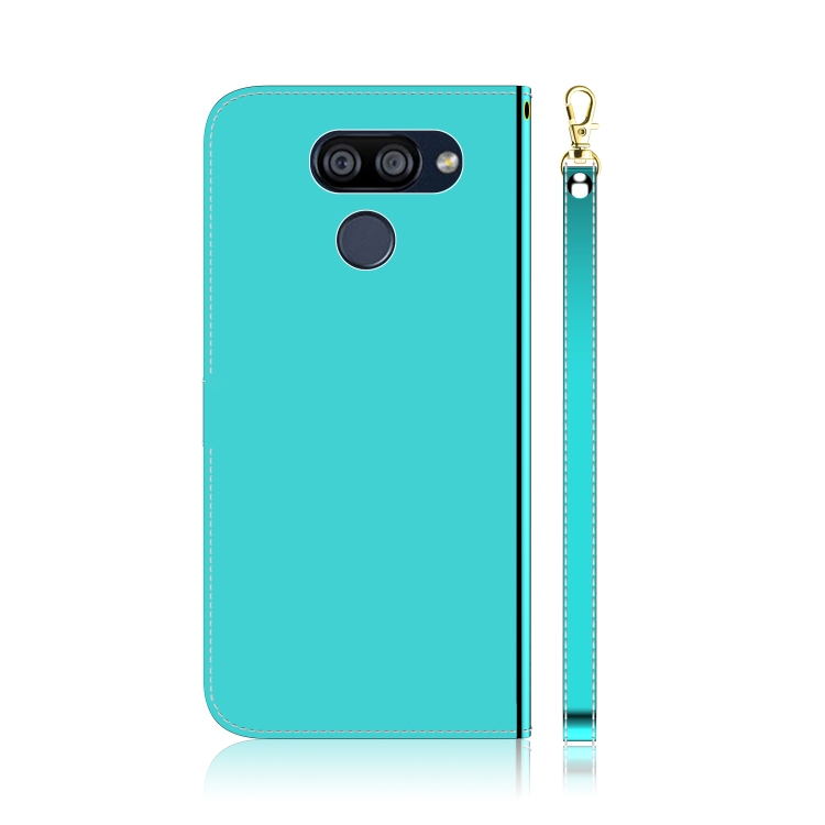 Estuche de Cuero Abatible Horizontal para LG K40S con Soporte, Ranura para Tarjeta y Billetera (Verde Menta)