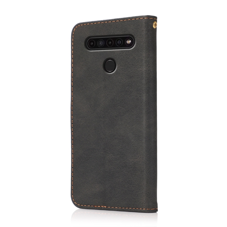 Estuche para LG K41S y K51S de Cuero con Costuras Dos Colores (Marrón Negro)