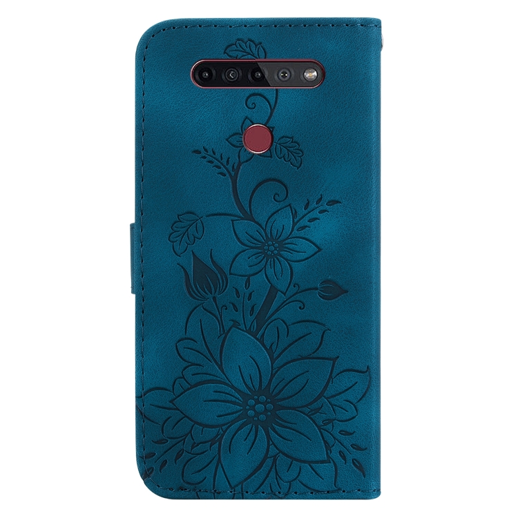 Estuche para Teléfono LG K41S K51S Cuero con Relieve de Lirio (Azul Oscuro)