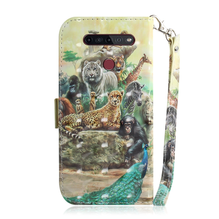 Funda de Cuero para LG K41S y K51S con Tapa Horizontal, Dibujo 3D, Soporte, Ranuras y Cordón (Zoo)