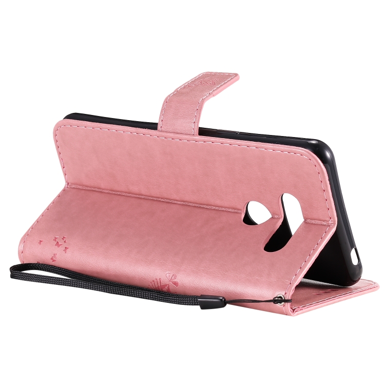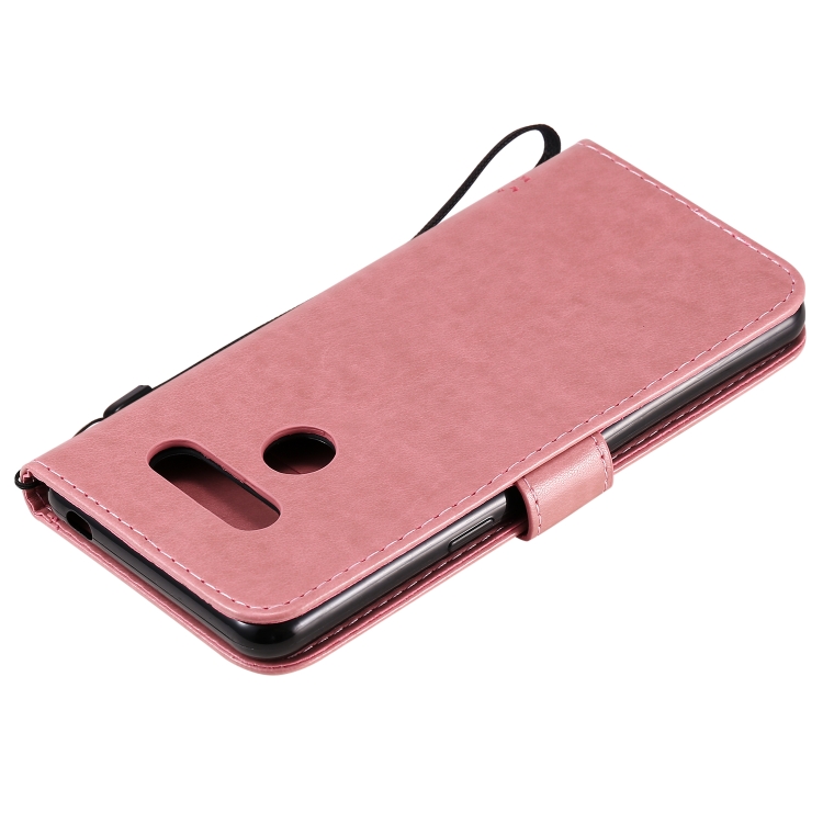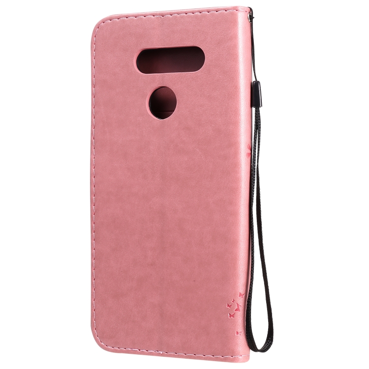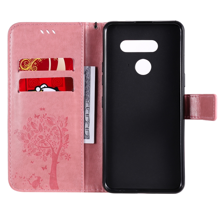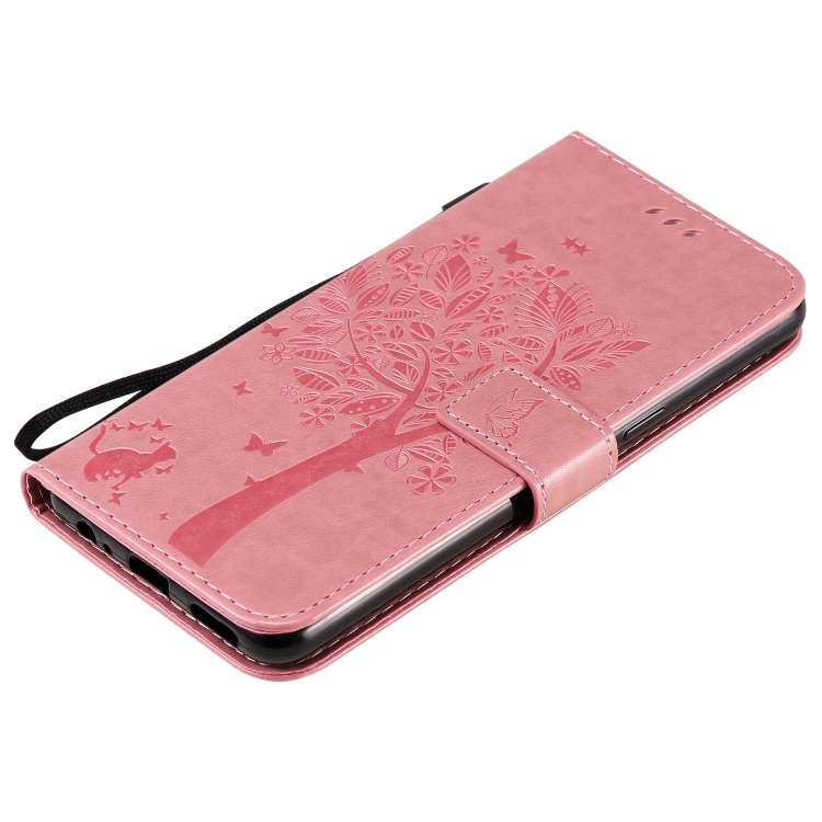 Funda de Cuero para LG K41S K51S con Tapa Horizontal, Patrón Árbol y Gato, Soporte, Ranuras y Cordón (Rosa)
