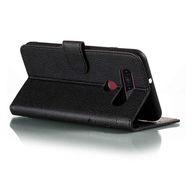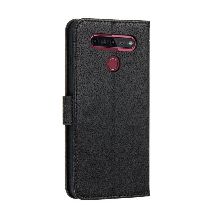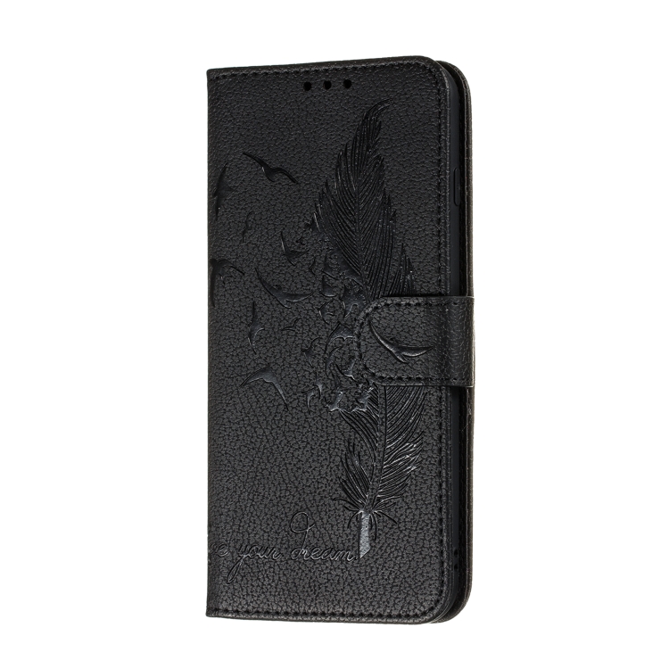 Funda de Cuero para LG K41S K51S con Patrón de Plumas, Tapa Horizontal, Billetera y Soporte (Negro)