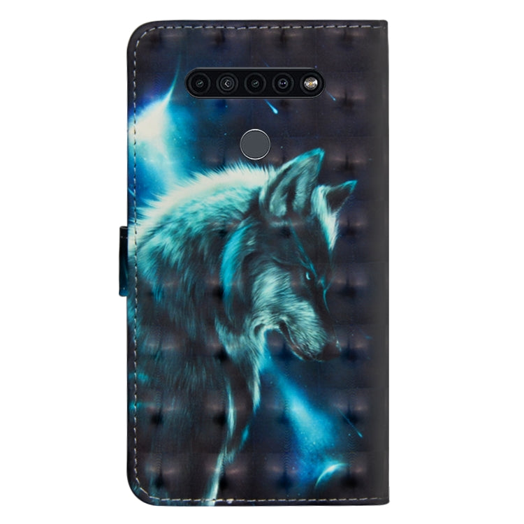 Funda para LG K41S TPU 3D Flip Horizontal + Cuero PU con Soporte, Ranuras y Cordón (Lobo)