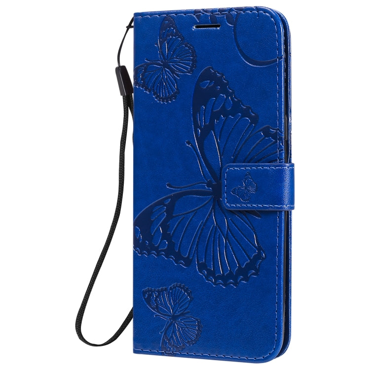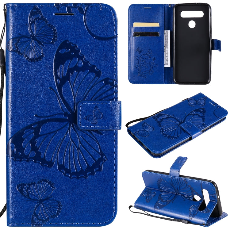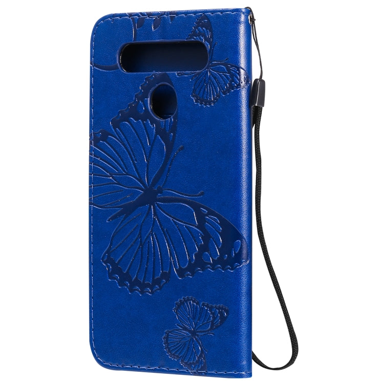 Funda de Cuero LG K41S y K51S con Tapa Horizontal, Patrón Mariposa 3D, Soporte, Ranura Tarjeta, Billetera y Cordón (Azul)