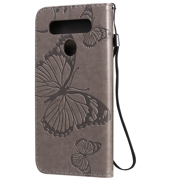 Funda de Cuero para LG K41S y K51S con Tapa Horizontal, Patrón Mariposa 3D, Soporte, Ranura para Tarjeta y Cordón (Gris)