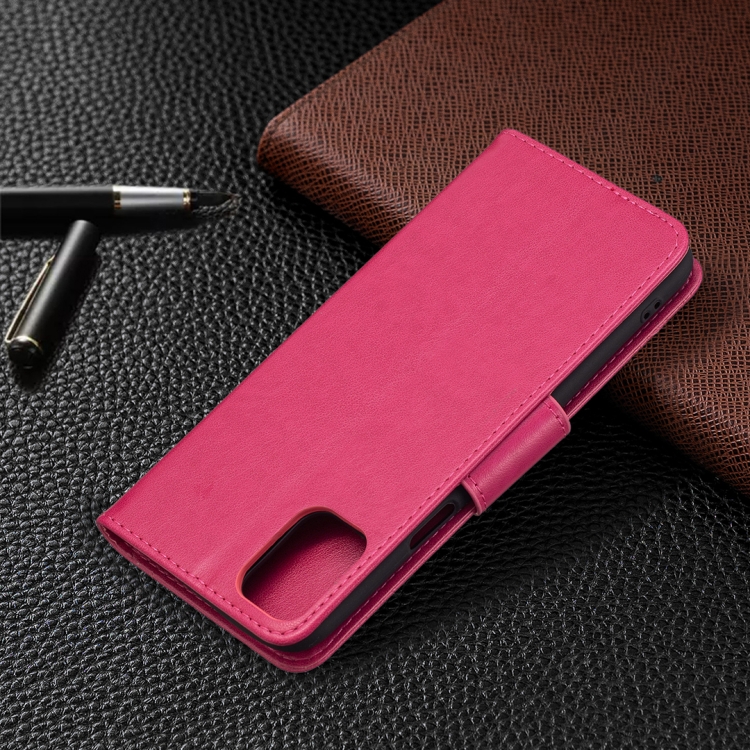 Funda Cuero Horizontal LG K42 con Soporte, Ranura para Tarjeta, Billetera y Cordón (Rose Rojo)