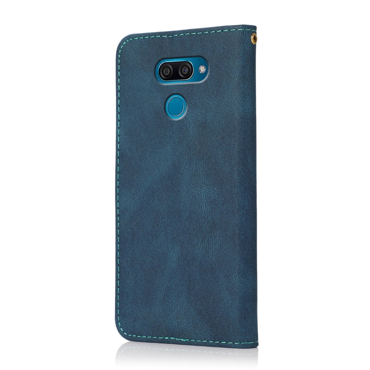 Estuche de Cuero para LG K50 / Q60 con Costuras de Dos Colores (Azul Verde)