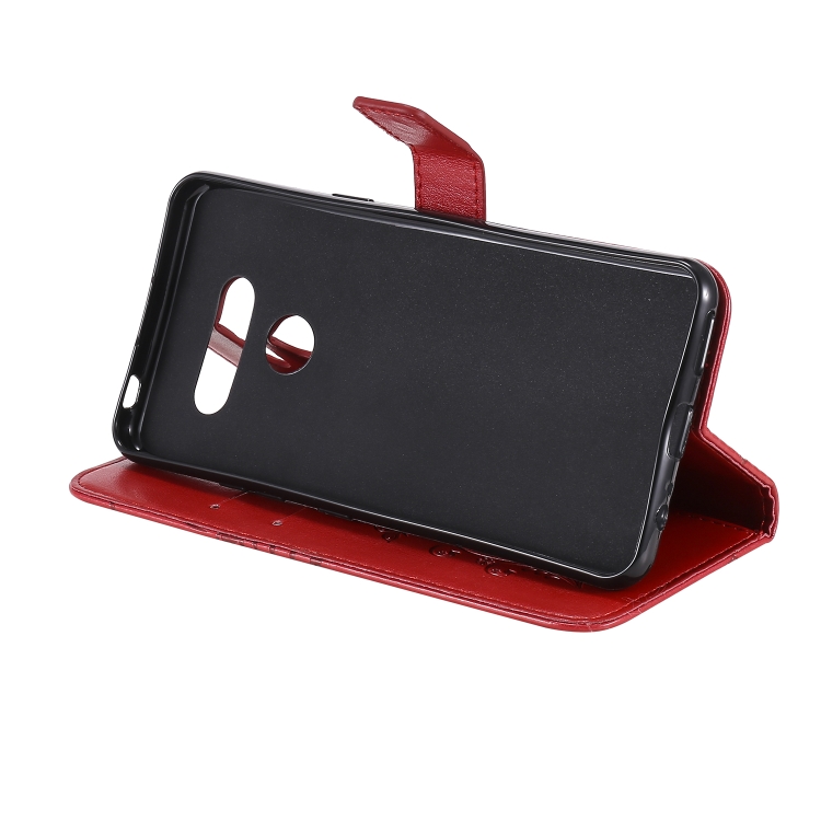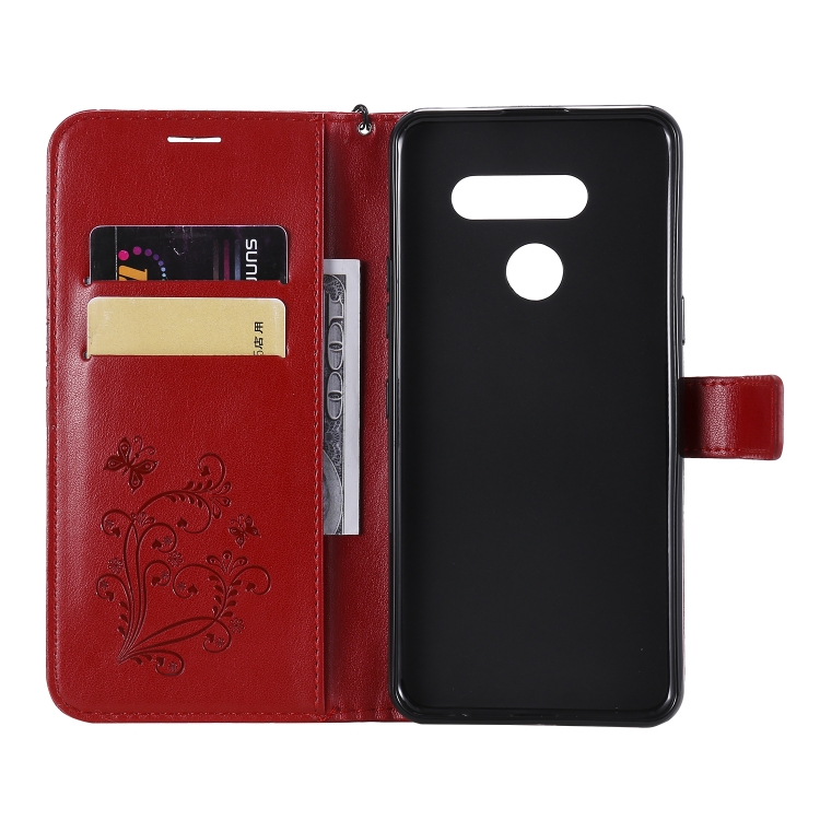 Funda de Cuero para LG K50S con Tapa Horizontal, Soporte, Ranura para Tarjeta y Cordón (Rojo)