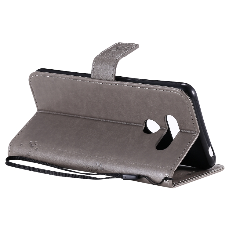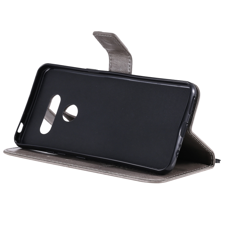 Funda de Cuero para LG K50S con Tapa Horizontal, Soporte, Ranuras para Tarjetas y Cordón (Gris)