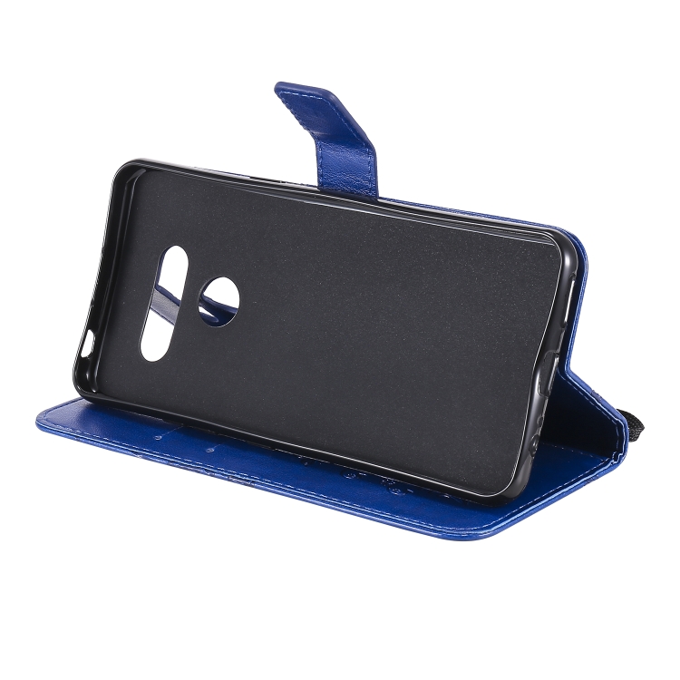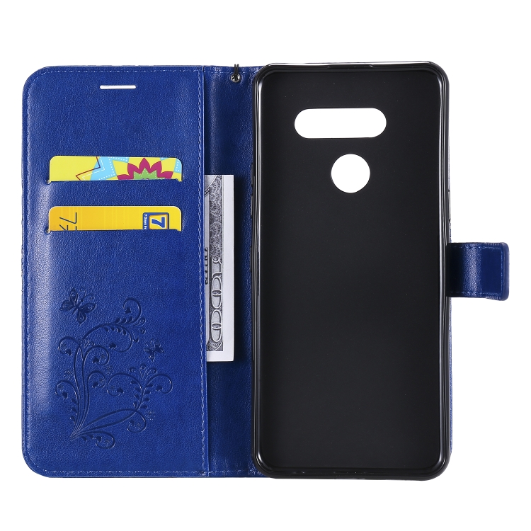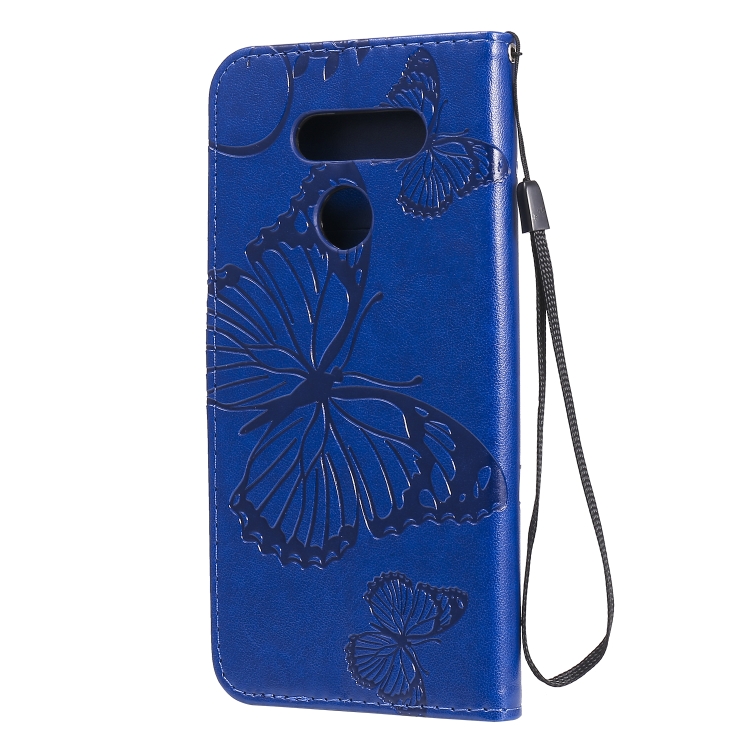 Funda de Cuero para LG K50S con Tapa Horizontal, Patrón Mariposa 3D, Soporte, Ranura Tarjeta, Billetera y Cordón (Azul)