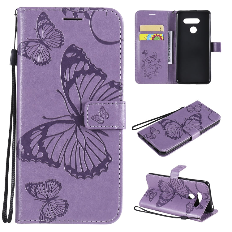 Funda de Cuero para LG K50S con Tapa Horizontal, Patrón Mariposa 3D, Soporte, Ranura Tarjeta y Billetera (Morado)