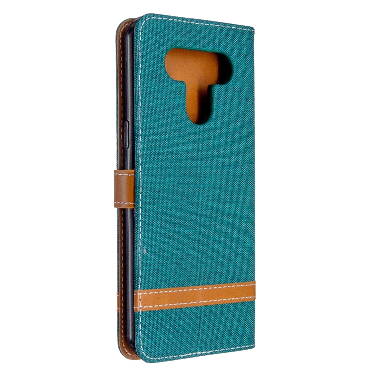 Funda de Cuero para LG K51 con Tapa Horizontal, Textura Mezclilla, Soporte, Ranuras para Tarjetas, Billetera y Cordón (Verde)