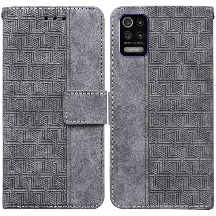 Caja de Cuero para LG K52 / K62 / Q52 en Relieve Geométrico (Gris)