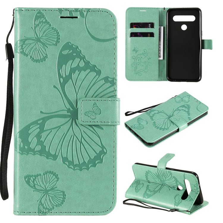 Funda de Cuero LG K61 3D Mariposa con Tapa Horizontal, Soporte, Ranura para Tarjeta y Cordón (Verde)