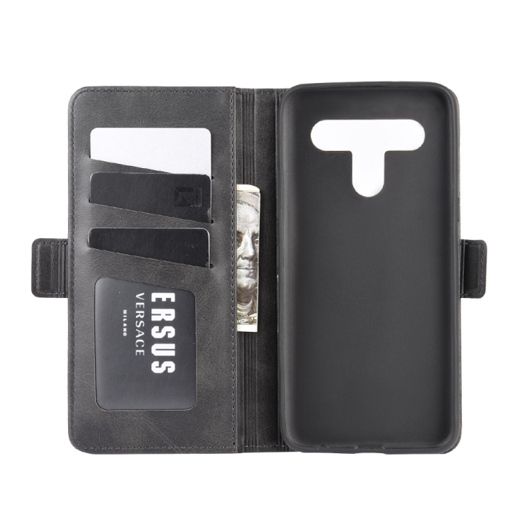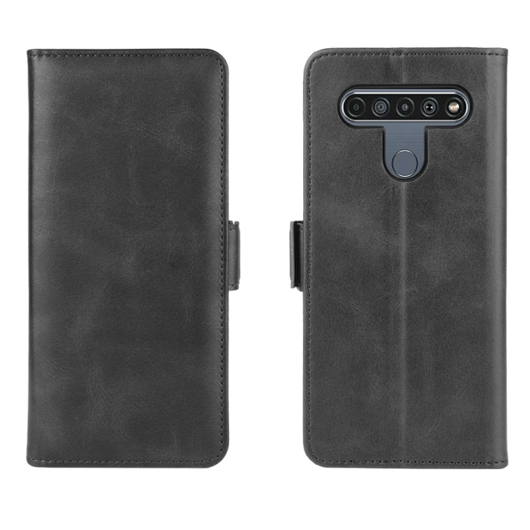 Estuche de Cuero Abatible Horizontal para LG K61 con Hebilla Magnética, Soporte, Ranuras para Tarjetas y Billetera (Negro)