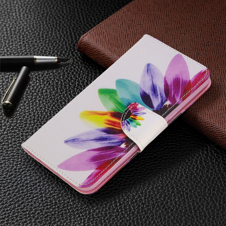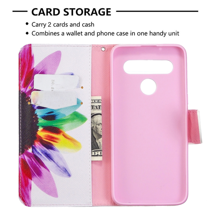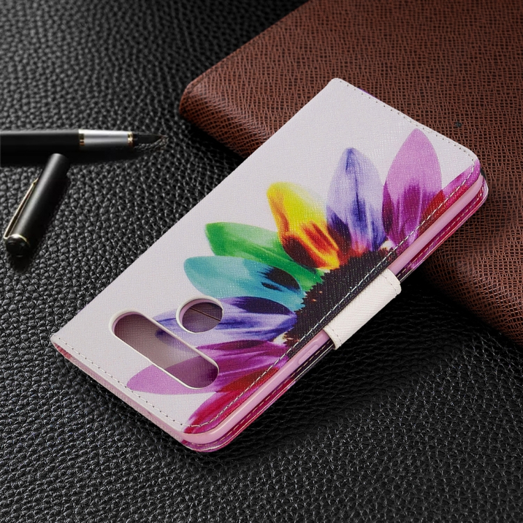 Estuche de Cuero Abatible Horizontal para LG K61 con Soporte, Ranuras para Tarjetas y Billetera (Sun Flower)