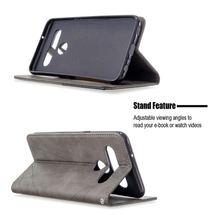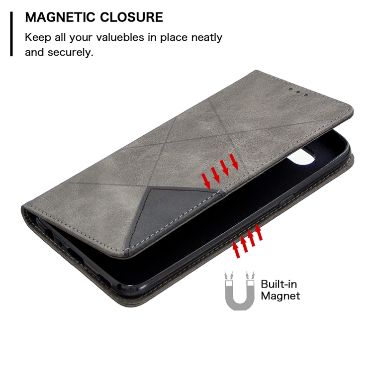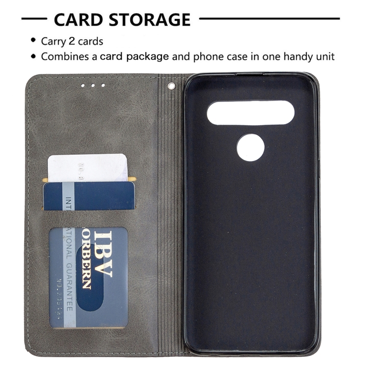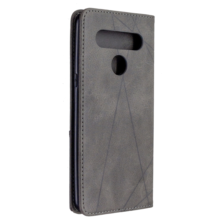 Estuche de Cuero Magnético para LG K61 con Tapa Horizontal, Textura de Rombo, Soporte y Ranuras para Tarjetas (Gris)