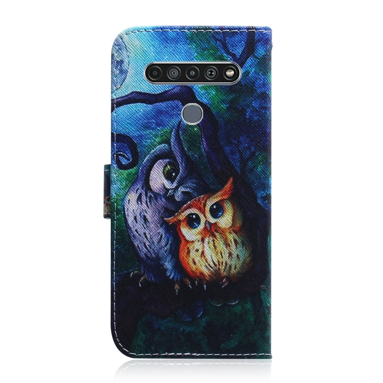 Funda de Cuero Abatible Horizontal para LG K61 con Soporte, Ranuras y Billetera (Búho de Pintura al Óleo)
