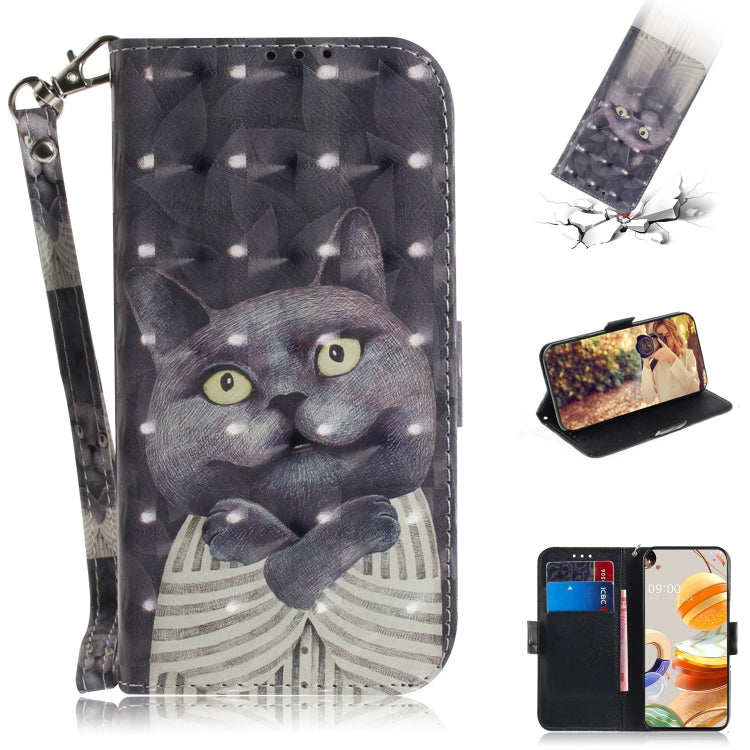 Funda de Cuero Abatible Horizontal para LG K61 con Dibujo 3D, Soporte, Ranuras y Cordón