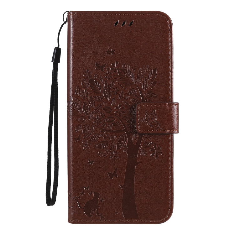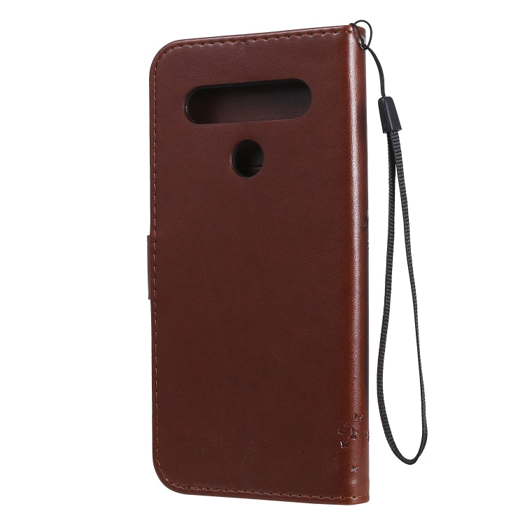 Funda de Cuero para LG K61 Tree & CAT con Tapa Horizontal, Soporte, Ranuras para Tarjetas, Billetera y Cordón (Café)