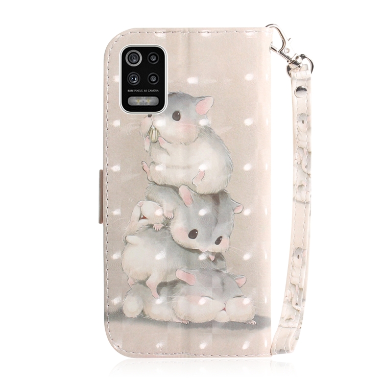Funda de Cuero Abatible Horizontal para LG Q52 con Dibujo 3D, Soporte, Ranuras y Cordón (Ardillas)