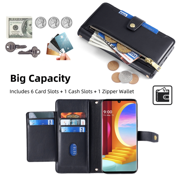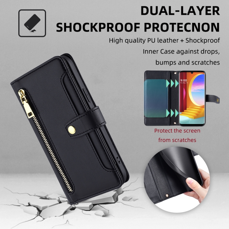 Funda de Cuero para Teléfono LG Velvet Sheep Texture Cross-Body Zipper Wallet (Negro)