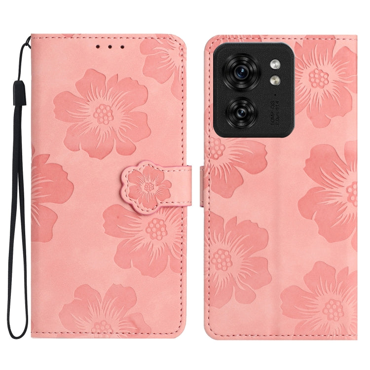 Funda de Cuero para Motorola Edge 40 con Estampado de Flores (Rosa)