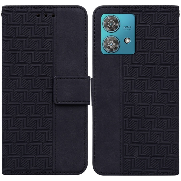 Funda de Cuero para Motorola Edge 40 Neo con Relieve Geométrico (Negro)