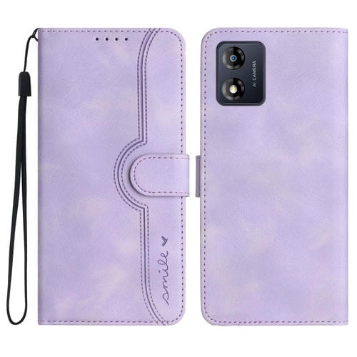 Funda de Cuero para Motorola Moto E13 con Sensación de Piel y Patrón de Corazón (Púrpura)