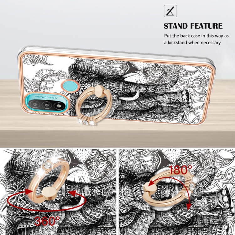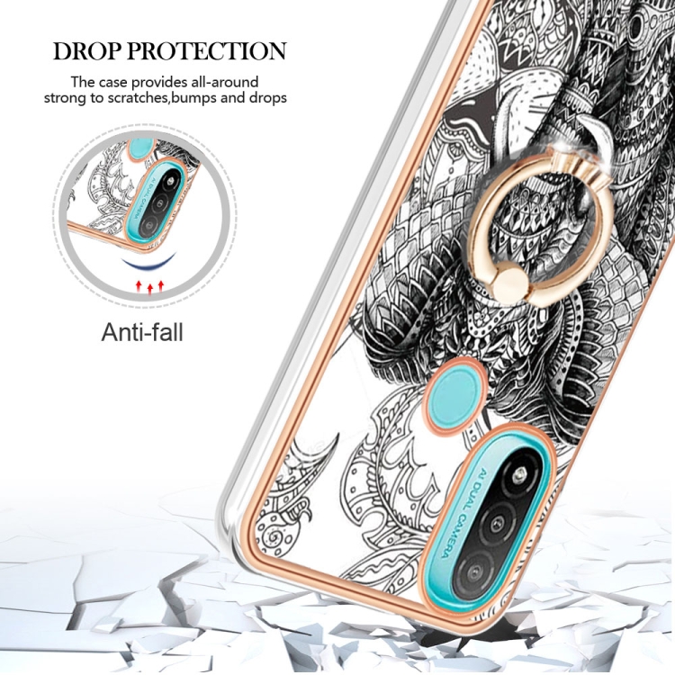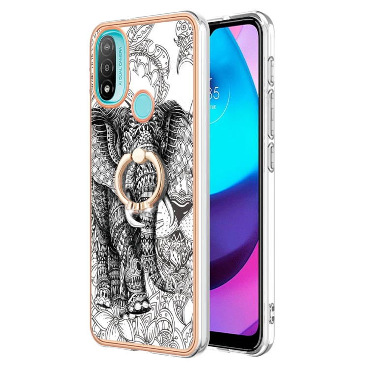 Caja de Teléfono IMD Doble Cara para Motorola Moto E20 E30 E40 con Soporte para Anillo (Totem Elephant)