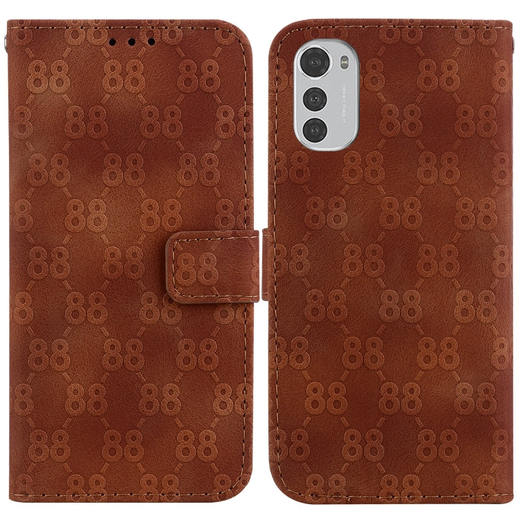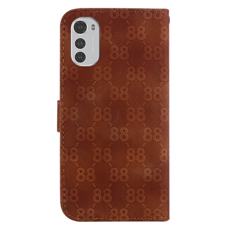 Estuche para Motorola Moto E32 de Cuero en Relieve Doble Forma de 8 (Marrón)