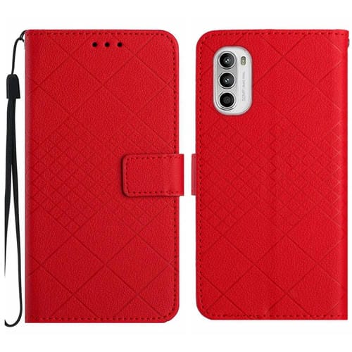 • 1x Funda de Cuero para Motorola Moto G Stylus 2022 4G con Textura de Rejilla Rómbica (Rojo)
