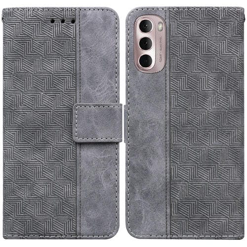 Caja de Teléfono de Cuero para Motorola Moto G Stylus 4G 2022 en Relieve Geométrica (Gris)
