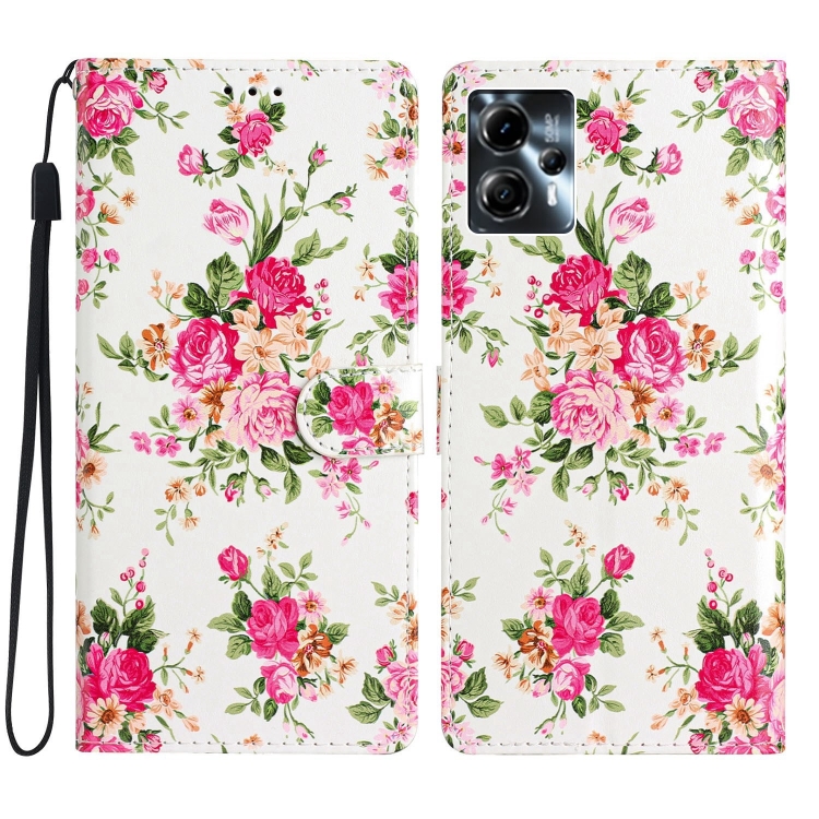 - 1x Estuche de Cuero para Motorola Moto G13 G23 G53 con Dibujo Coloreado Peonías
