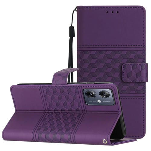 Funda de Cuero para Motorola Moto G14 4G con Relieve de Diamante (Púrpura)