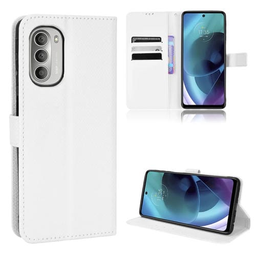 - 1x Caja de Cuero para Motorola Moto G52J 5G con Textura de Diamante (Blanco)