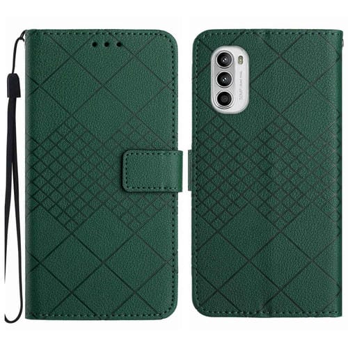 Funda de Cuero para Motorola Moto G52J 5G con Textura de Rejilla Rómbica (Verde)
