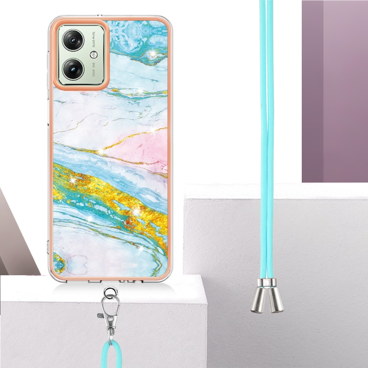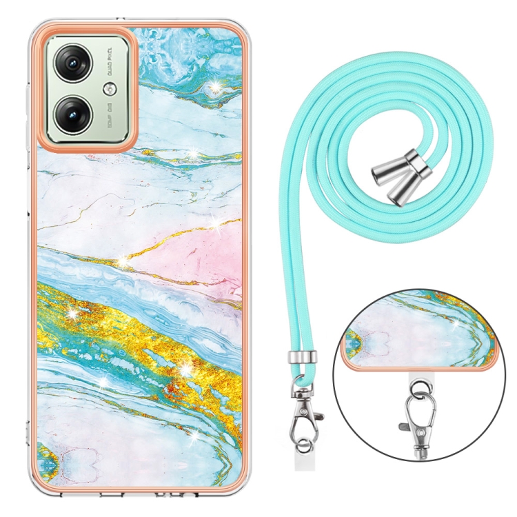 Estuche para Motorola Moto G54 Imd Doble Cara Mármol Galvanizado con Cordón (Verde)