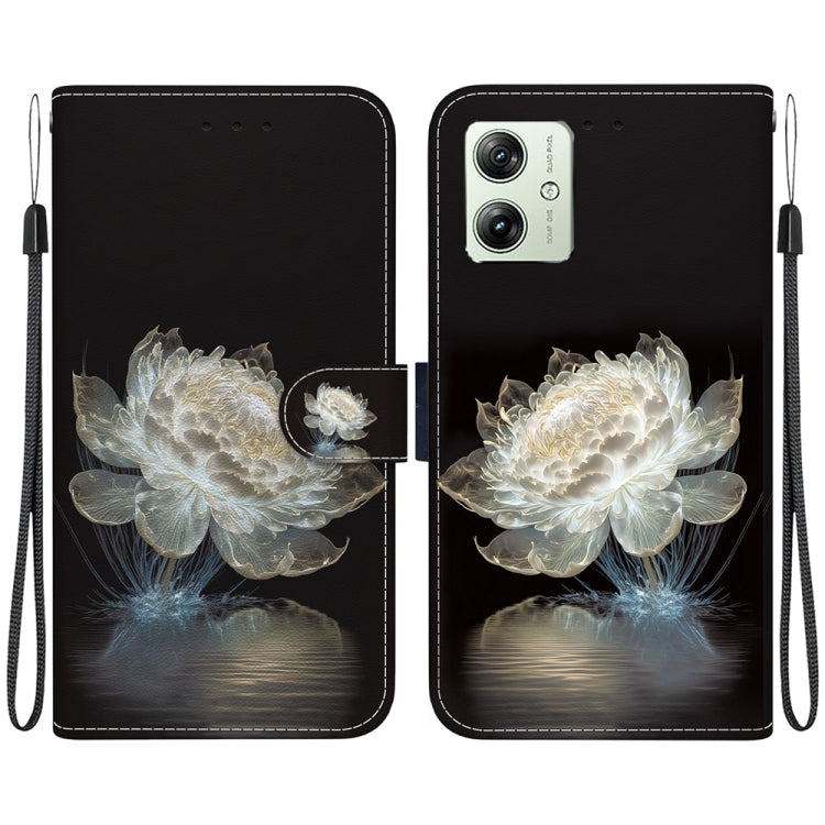 Funda de Cuero para Motorola Moto G54 con Dibujo Coloreado y Textura de Cristal (Peonía)