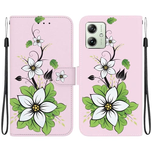 Funda de Cuero para Motorola Moto G54 con Dibujo Coloreado y Textura de Cristal (Lirio)