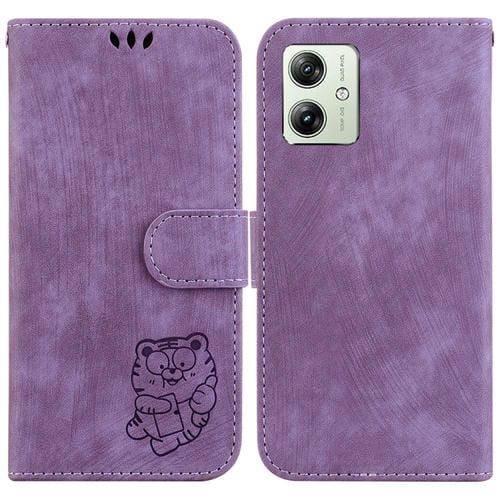 Funda de Cuero en Relieve para Motorola Moto G54 Little Tiger (Púrpura)