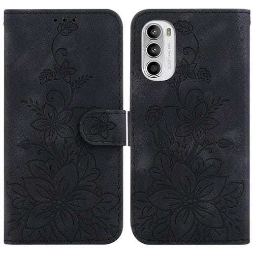 Funda de Cuero En Relieve para Motorola Moto G62 5G Lily (Negro)
